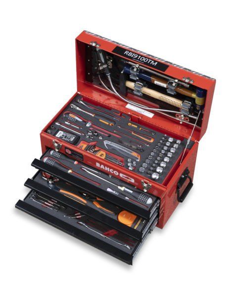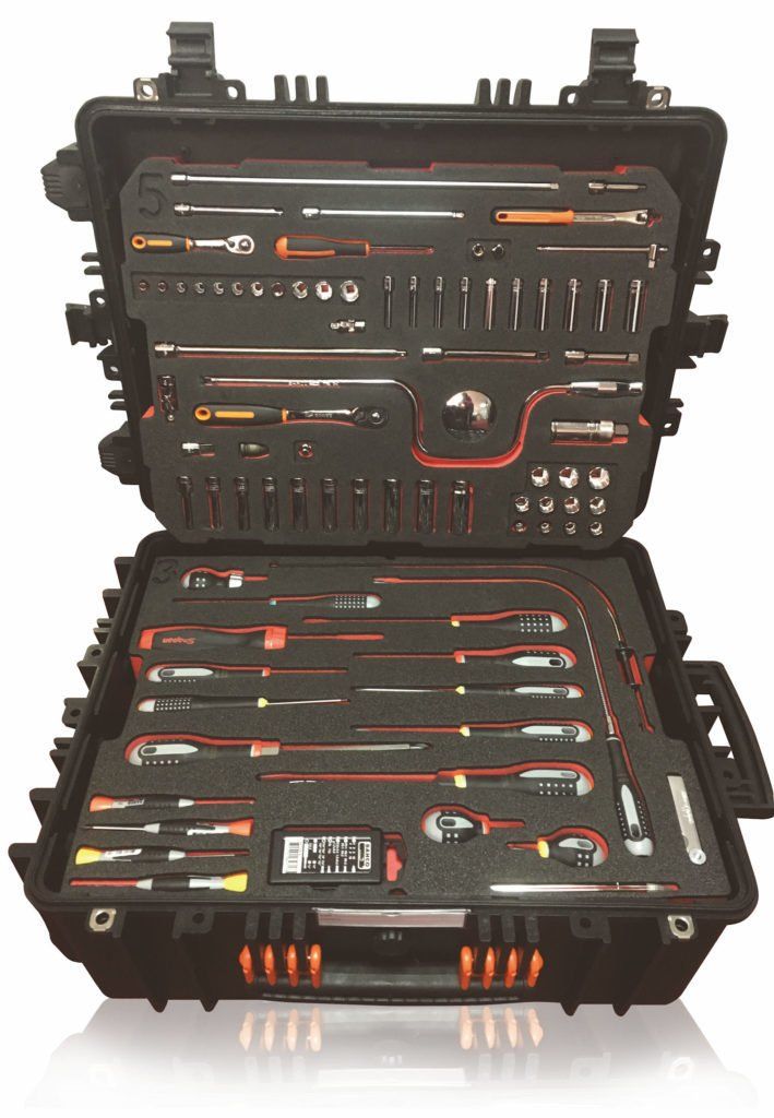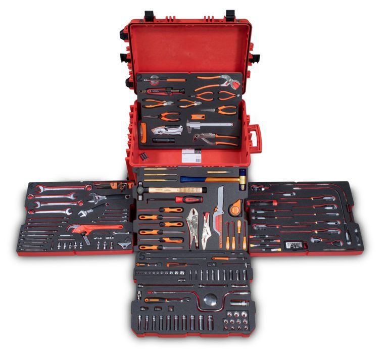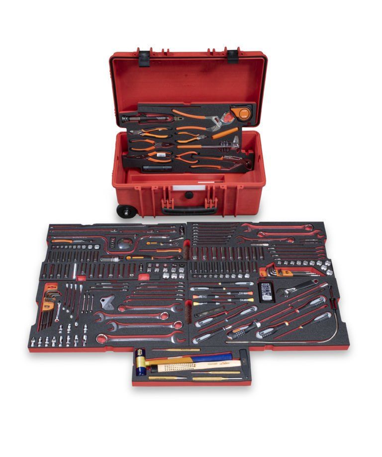 A selection of 88 BAHCO tools, with a lifetime guarantee, fitted into an wheeled case. The tools are embedded into two-colour foam, offering a heightened level of tool control. The foam is hydraulic fluid and oil resistant.