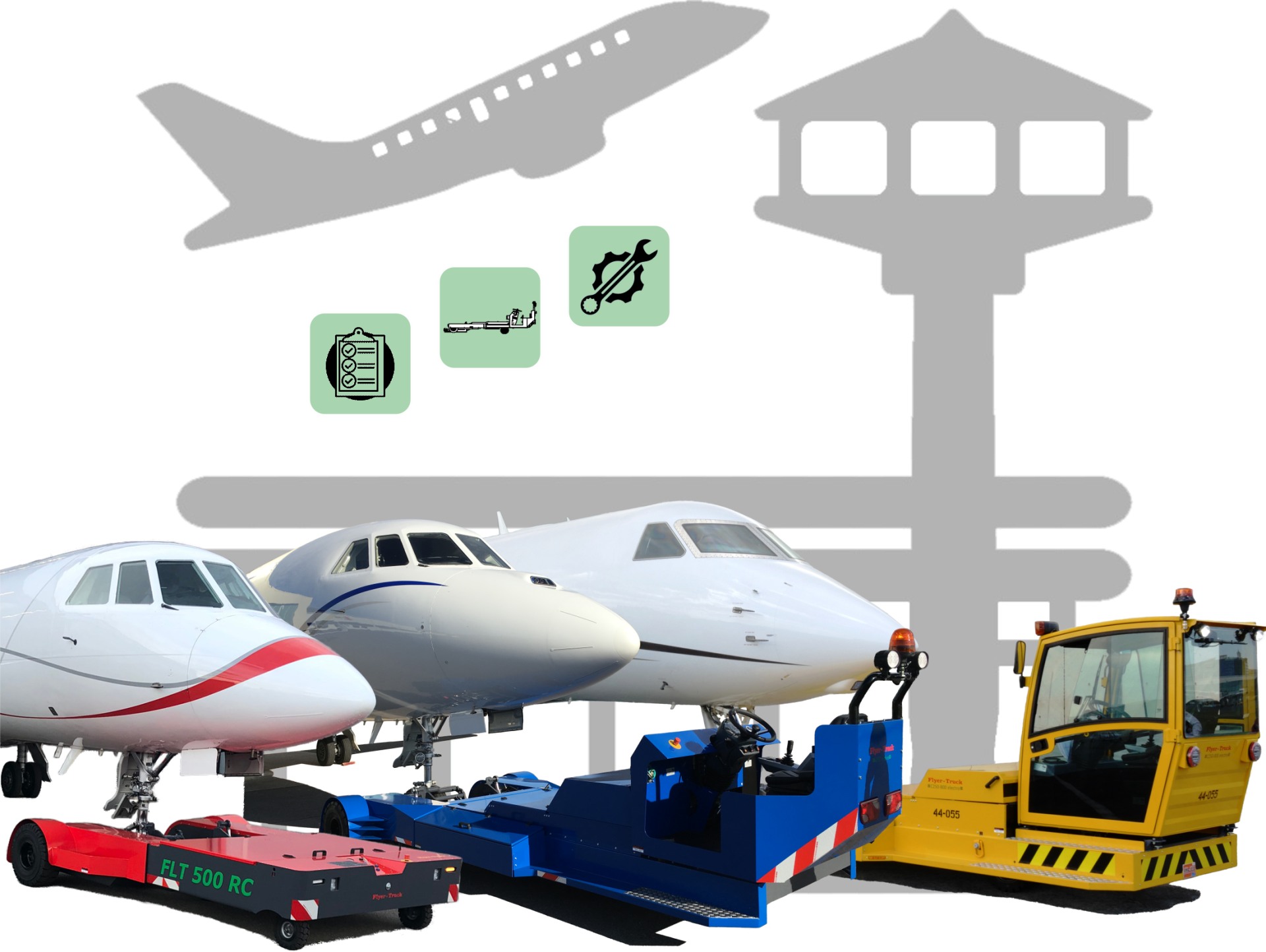 Flyer-Truck Schlepper im Einsatz in der Privat Aviation, in Werften, bei FBO's und Flughäfen.